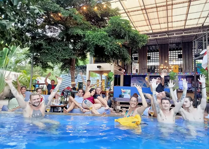 Das Hostel Revolution Siem Reap liegt 6 Gehminuten von Sam Veasna Center entfernt und bietet einen Außenpool für Gäste.